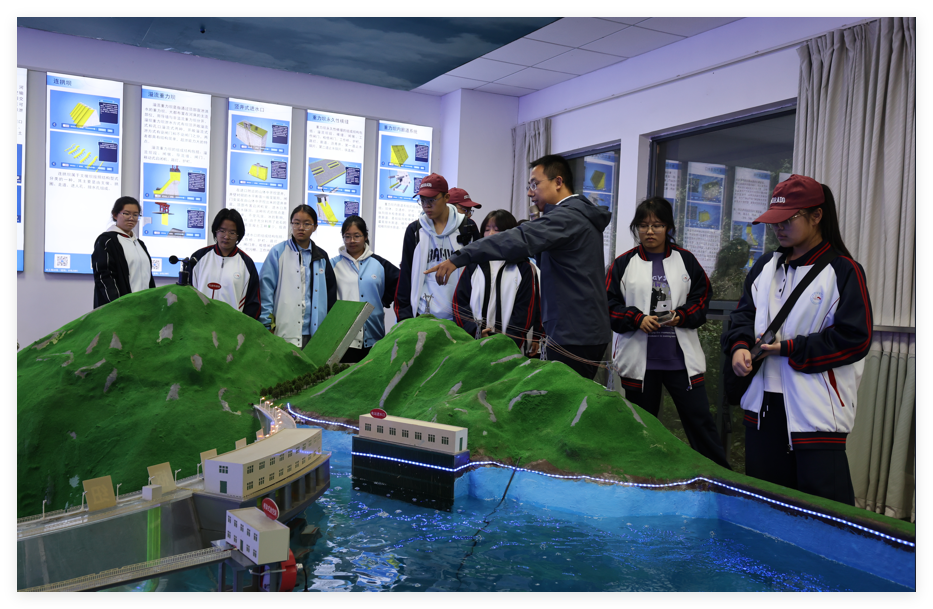 上午,红旗中学师生一行在河海大学老师引导下参观“治水百年路”中国共产党治水成就展和河海大学校史馆,通过档案资料、图片视频等了解中国共产党带领人民走过的治水兴水光辉历程,从河海大学百十校史中了解河海大学“兴学育才,治水兴邦“的不懈探索与丰硕成果。在水利水电实验教学与创新中心、港航综合模拟平台,水工结构实验、港口航道模拟系统等动态演示,将抽象理论转化为可触可感的科技实践,激发起学生对水利工程技术的浓厚兴趣。