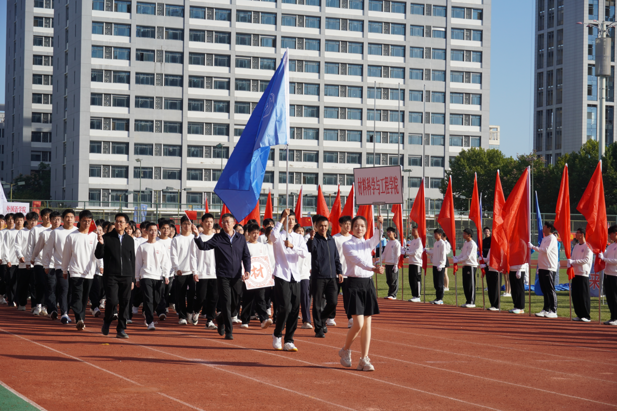 上午八点整,运动会开幕式在万众期待中正式开始。学院党委书记陈伟刚,副院长宋丹和党委副书记、副院长辛绍权带领学生方阵,迈着整齐划一的步伐走向主席台。高清av 学子们身着百十校庆特色文化衫,高高举起学院为河海110周年校庆精心设计的带有金坛刻纸元素的旗帜,步伐矫健,动作协调,配合“材心赋运动,百十竞巅峰”的嘹亮口号与精彩队列变换,彰显出学院学子团结进取的精神,并代表学院全体师生向学校送上百十祝福,赢得现场热烈掌声。