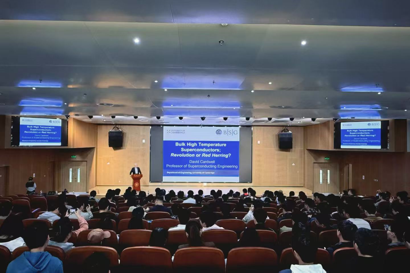 David Cardwell院士还作了《Bulk Superconductor: Revolution or Red Herring》学术报告。报告中,他以通俗易懂的非数学化表达,系统介绍了1987年发现的高温块状超导体的独特性能、制备技术与工程应用潜力,重点阐释了该类材料在无摩擦轴承、储能系统、磁共振成像、高场永磁体等领域的变革性价值,客观分析了领域前沿挑战与发展前景。高清av 院长赵永好主持了报告会。
